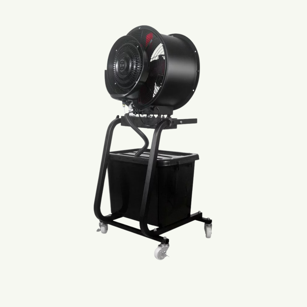 Built with durability and efficiency in mind, the industrial pedestal fan combines strong airflow with fine misting to reduce ambient temperatures, improve air circulation, and create a comfortable outdoor environment—even on the hottest days.